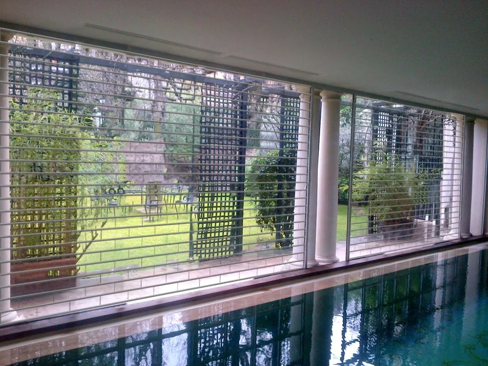 Il s’agit d’une nouvelle génération de rideaux de protection transparents composés de très grands maillons en polycarbonate reliés par des tubes en aluminium. Ainsi, la visibilité véritablement panoramique du volet transparent MAXIVISION PLUS et son design offrent une élégance et une esthétique incomparable. De plus, ce modèle de rideau de protection, conçu et commercialisé par Eurolook, est certifié NF ; il appartient à la classe 4, qui offre une parfaite résistance aux vents violents.